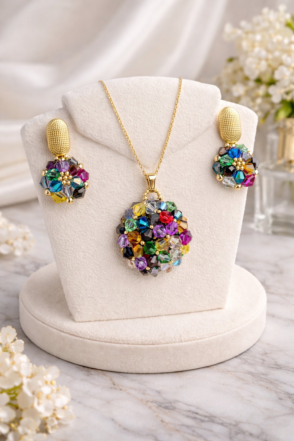 Handmade Multicolor Crystal Jewelry Set – Necklace & Earrings